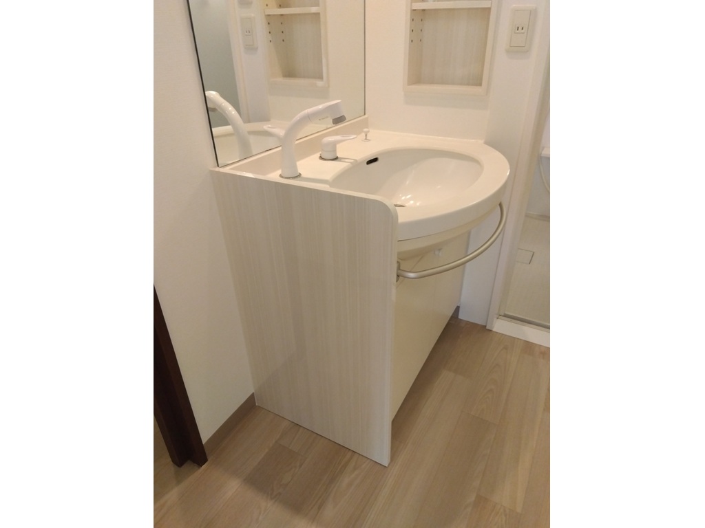 今回は、小修繕の事例をご紹介します。 洗面台の側面にサイドパネルを設置しました。