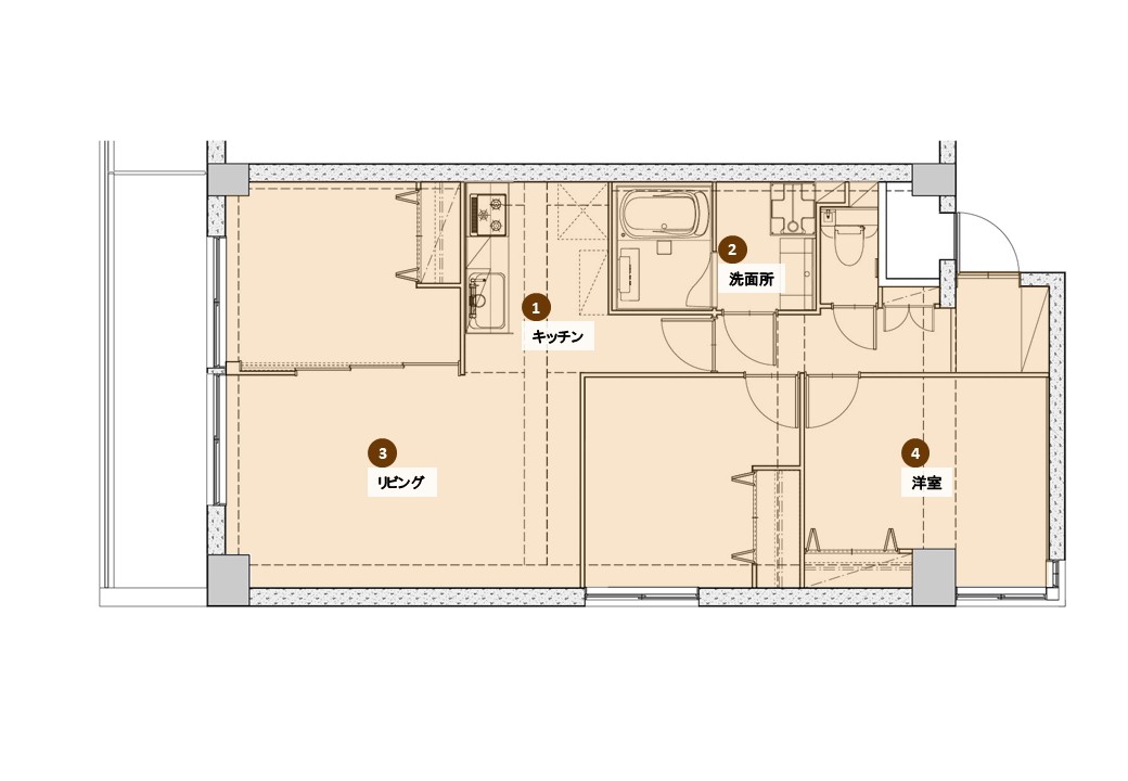 既存の間取りでは、水廻りが独立性を優先した配置となっており、生活動線が分断されていました。
