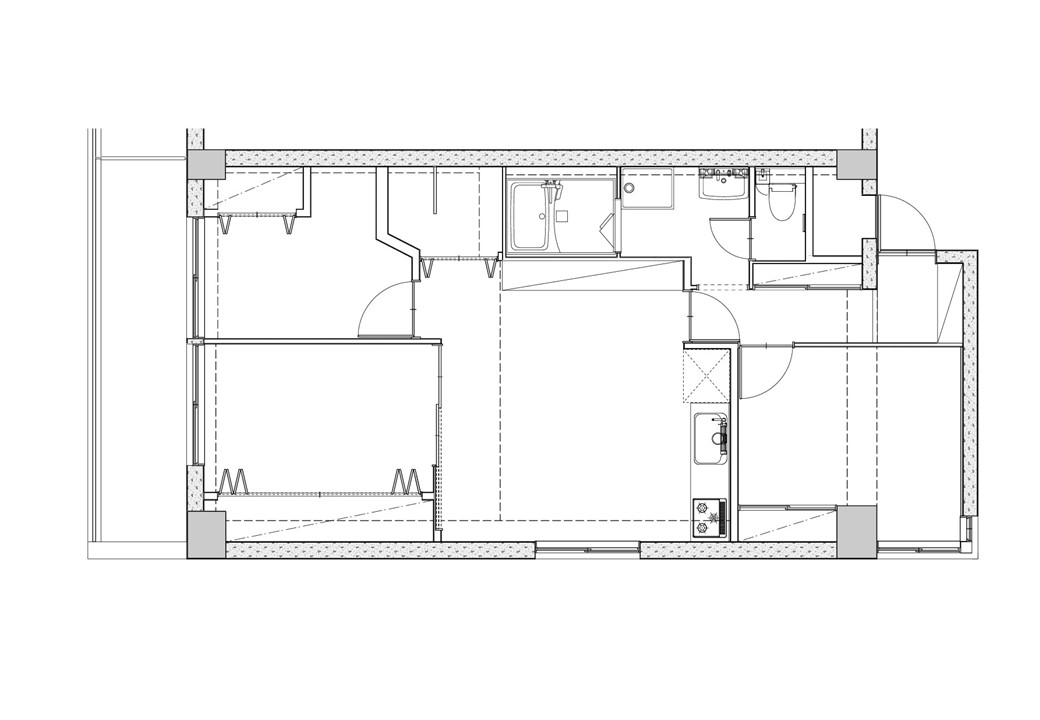 当時よく見られた細かく仕切られた間取りや、水廻りが奥まった配置になっている設計を、現在のニーズに合わせて再構築。