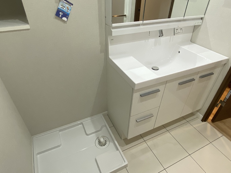 今回の改修では、キッチン・洗面・浴室の位置関係を見直し、回遊性のある動線へ再構築。限られた専有面積の中でも無駄な移動を減らし、日常の使いやすさを向上させました。
