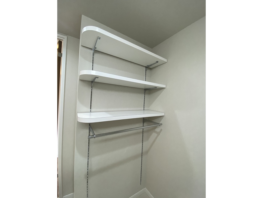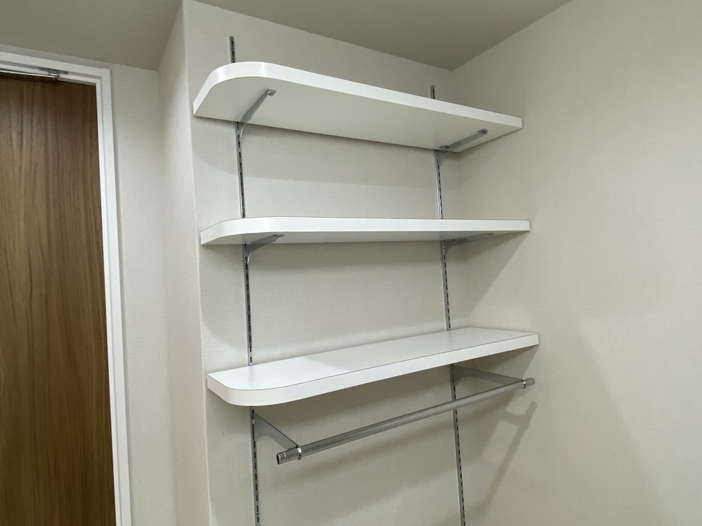 3枚の棚板とタオル掛けがお好きな場所に設置出来ます。